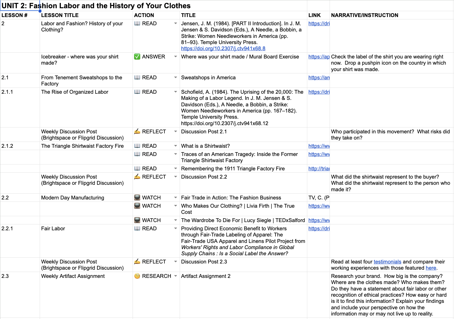 To stay organized, we created a spreadsheet and separated our individual content areas by tab:
